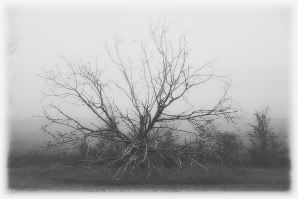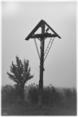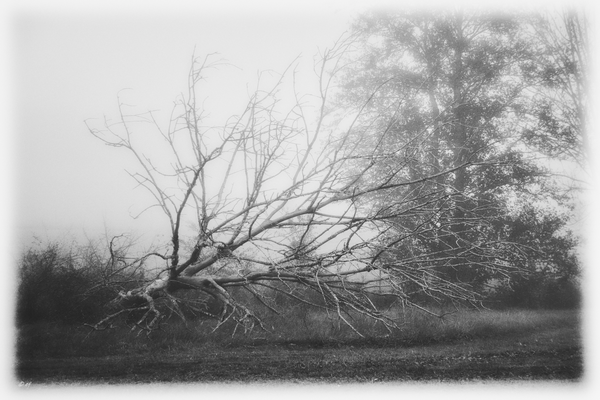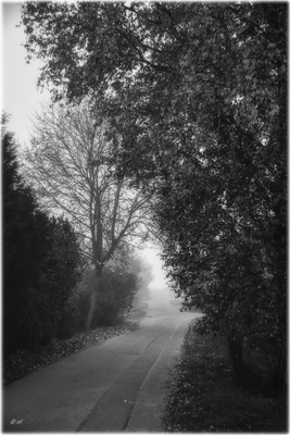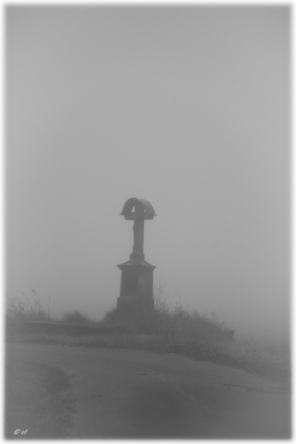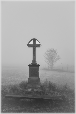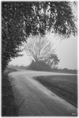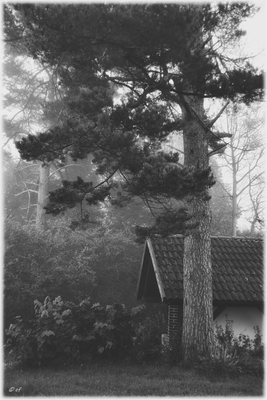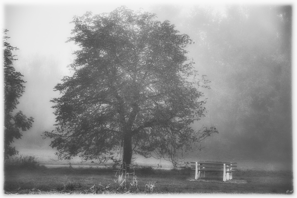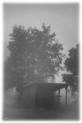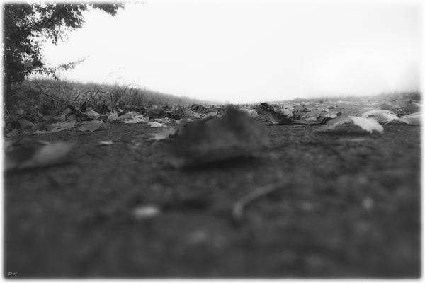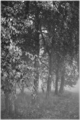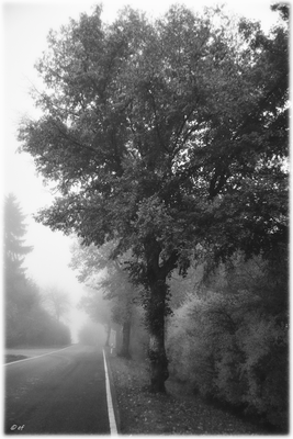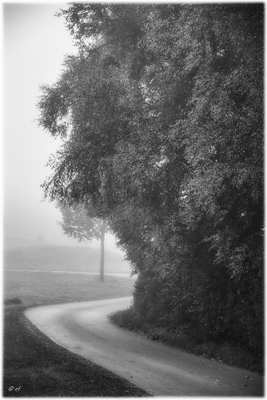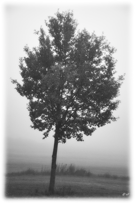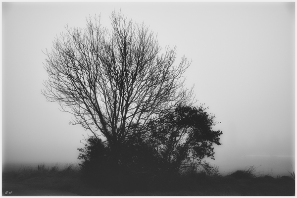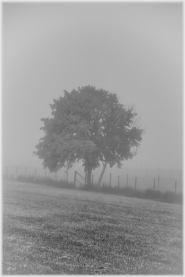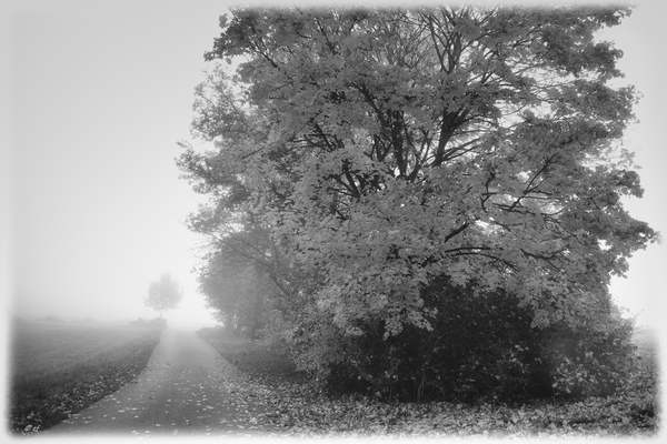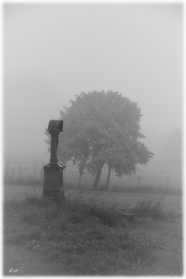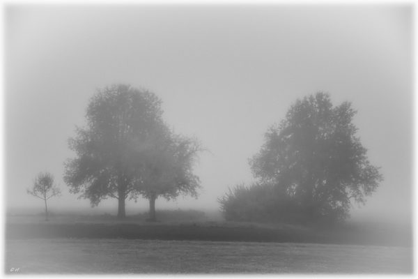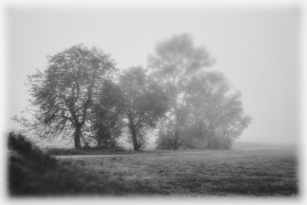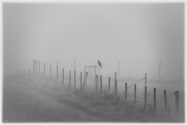 Es ist früh am Morgen. Der Tag will gar nicht recht erwachen. Schwere Feuchtigkeit verdunkelt und vernebelt das Land. Die Ferne wird vom Nebel verschluckt und bildet eine weiße milchige Wand. Konturen verschwimmen.